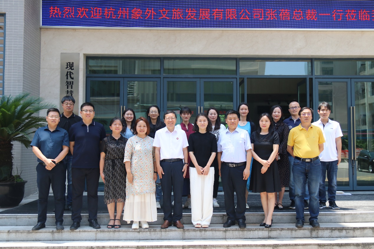 继6月4日,校党委常委、副校长孟小军带队赴苏杭开展主题教育考察调研暨访企拓岗专项行动之后,6月26日(星期一)上午,杭州象外文旅发展有限公司总裁、浙商总会文化创意产业委员会主席张蓓,象外文旅副总裁杜燕华、副总裁李燕玲、副总裁许慧媛等一行7人到a片网站