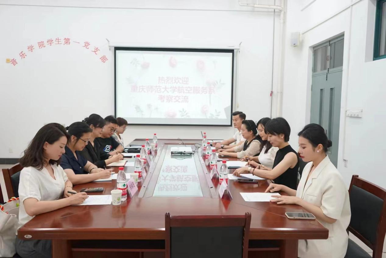 6月16日,a片网站 航空服务系主任谢媛媛、副主任罗杰和专业教师张科、李林芝、巫昊燕一行5人抵达山东师范大学音乐学院开展调研考察。