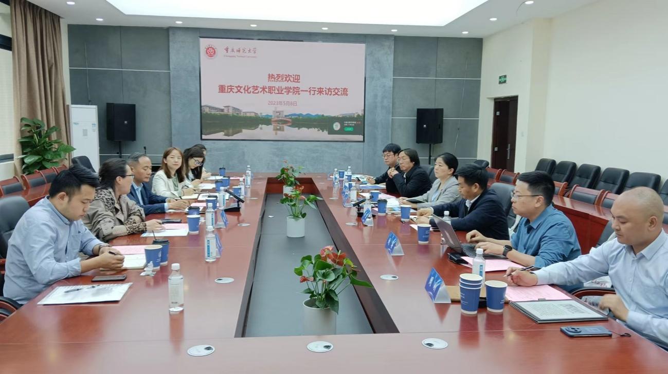 5月8日下午,重庆文化艺术职业学院党委副书记胡刚、重庆文化艺术职业学院副院长胡莉一行六人到a片网站
