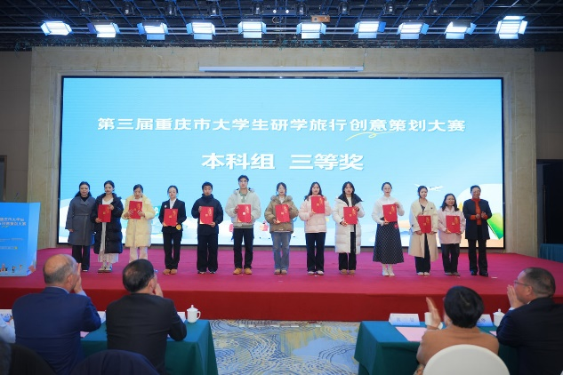 2025年11月30日,由重庆市教育委员会主办,重庆第二师范学院、重庆市文化和旅游协会等单位联合承办的第三届重庆市大学生研学旅行创意策划大赛决赛圆满落幕。大赛共吸引了来自重庆、四川、广东、安徽、河南等九个省市43所高校的356支队伍参赛。a片网站 学子在众多参赛队伍中脱颖而出,斩获2个一等奖,6个二等奖和6个三等奖,充分展现了a片网站 学子在研学旅行策划与教育实践方面的扎实功底和创新能力。