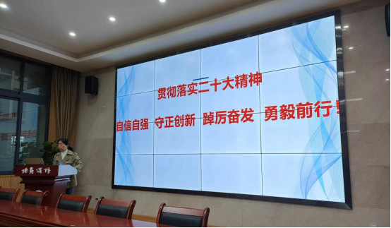胡芳书记首先强调了学习宣传贯彻党的二十大精神,是当前和今后一个时期全党的首要政治任务,也是新时代教师必须自觉担负起的政治责任,我们要以强烈的政治责任感和历史使命感,抓好抓实大会精神的学习贯彻。学习内容主要分为三个部分:党的二十大报告的主要内容、党的二十大通过的决议的主要内容、主流媒体对党的二十大的相关报道等。