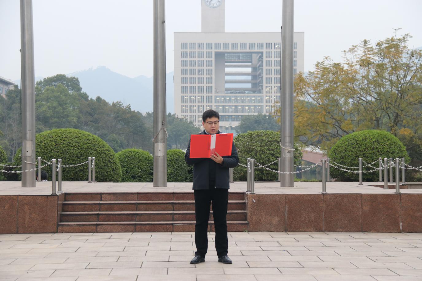 学院党委书记胡芳发表了以“努力用青春书写新时代荣光”为主题的国旗下讲话。针对实现自我价值和为祖国、母校的教育事业添砖加瓦,胡书记对同学们提出三点期望:一是要坚守信仰志向,成为胸怀天下的爱国志士;二是要脚踏实地奋进,成为教育强国的有志之才;三是要勇于挺身而出,成为改革创新的有为之士。希望地旅学子以切实的行动向祖国表达最诚挚的献礼,用汗水和智慧为国旗增添无尽的光辉与荣耀。