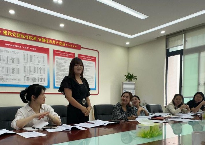 随后开展交流发言环节,教工一支部书记张仕超运用简洁有力的手势动作,带领中心组成员生动回顾了社会主义核心价值观的24字内涵,通过形象化的手势设计,逐一拆解使抽象概念具象化、理论记忆可视化,与会党员表示,在教学设计中,这种互动式、沉浸式的学习方式,不仅强化了对核心价值观的理解,更启发了如何将思政元素有机融入专业教学,实现知识传授与价值引领的同频共振。本科一支部书记袁满老师就“如何做好新时代高校网络舆论引导工作”与大家分享了心得体会。作为一线辅导员,既是学生成长的引路人,也是网络思政阵地的守护者,在新时代新媒体环境下有效开展舆论引导,需要着重提高学生政治站位,把好舆论“方向盘”、深耕网络阵地,打造思政教育“新平台”、以学生为中心,做好舆情应对“疏导员”、提升媒介素养,练就网络育人“真本领”等。网络舆论工作是一场“守土有责”的持久战,作为辅导员,我们既要成为学生的“知心网友”,也要当好网络空间的“灯塔”。