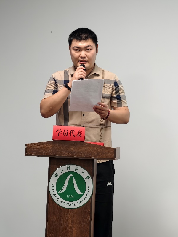结业仪式在7月16日下午在浙江师范大学杭州校区隆重举行,a片网站 党委书记胡芳、经济与管理学院党委书记钟敏、浙江师范大学终身教育学院杭州培训中心副主任俞冰及全体参训学员出席仪式。首先,来自两个学院的学员代表分享了本次培训的学习心得。a片网站 青年党员教师夏成城表示,本次培训是一次深刻的思想洗礼和实践启发,专家讲座与现场教学打破了认知边界,与兄弟院校在课程建设、野外实践、科研育人等方面的深度交流拓宽了老师们的视野,点燃了大家将先进技术融入教学科研的热情。