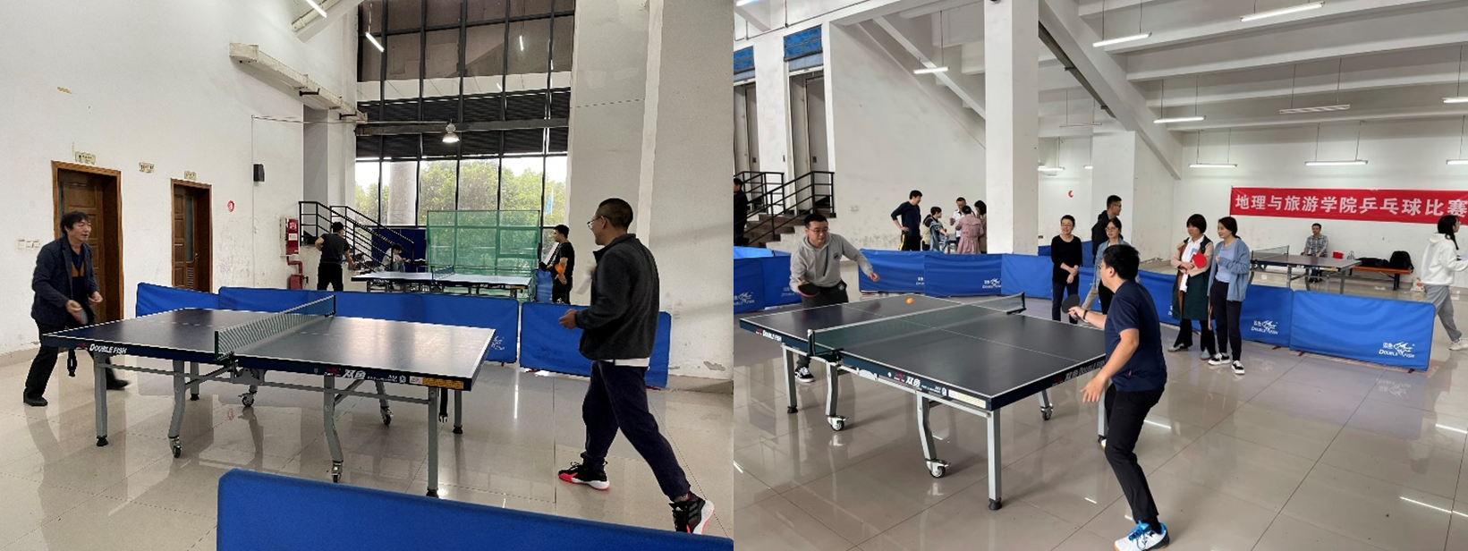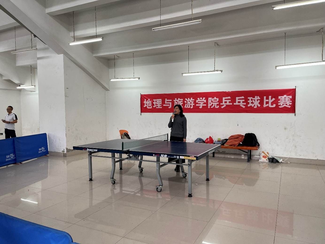 乒乓球比赛,在学校体育馆举行。本着“友谊第一、比赛第二”的体育精神,本次比赛设置了男单、女单与混双比赛,采取三局两胜的三轮赛制,分三组分别进行。学院地理科学系、地理信息科学系、旅游管理系、酒店管理系、城乡规划系及教辅学工等,共40余名教职工参赛。本次比赛学院党委高度重视,学院党委书记朱平、院长罗仕伟、副院长胡志毅、副院长韦杰亲自到现场为参赛队员鼓劲、助威,学院工会干部全程、全员参与组织、服务,为比赛提供最佳的后勤保障服务。