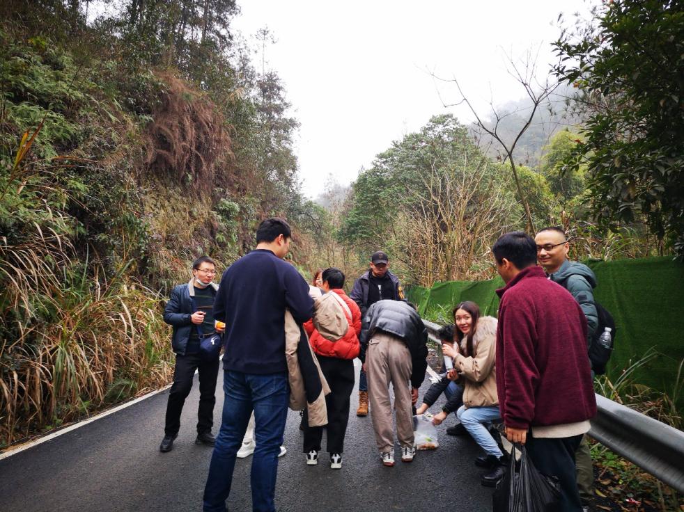 烟雨迷蒙的山间小路上,大家热情洋溢,紧密交谈,充满着温馨愉快,陡坡窄路上大家相互帮助,相互鼓励,不时回望是否有人掉队,这温馨的图景充分体现了学院良好的凝聚力与向心力。登山途中大家真切感受到了冬日烟雨朦胧的渝都山川之秀美,感受人与自然的和谐之美。