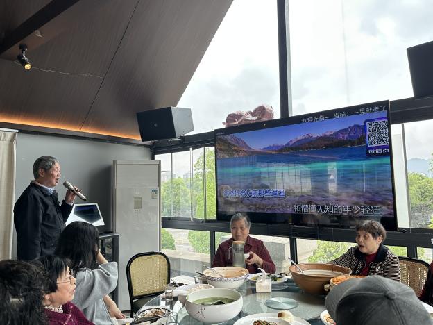 上午,离退休教职工们漫步于秀湖公园,在春意盎然的湖光山色中畅谈生活近况,追忆往昔峥嵘岁月。学院领导关切询问老同志们的身体状况,详细介绍学院近期在党建工作、学科建设、人才培养等方面取得的成果。午间,学院安排特色农家宴,席间老同志们自发组织即兴歌唱表演,《万水千山总是情》《革命人永远是年轻》《小城故事》《前门情思大碗茶》等经典旋律回荡席间,传递出银发初心不改的炽热情怀。