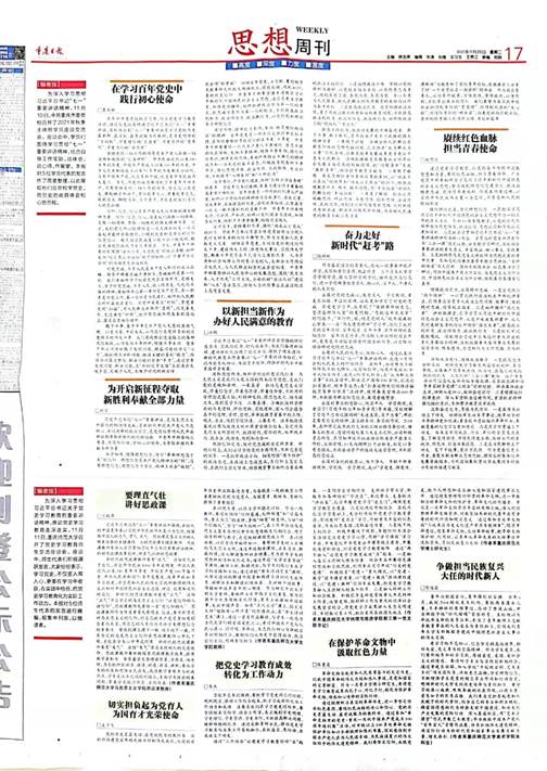 【支部动态】学院教工一支部党史学习教育成果在《重庆日报》报道