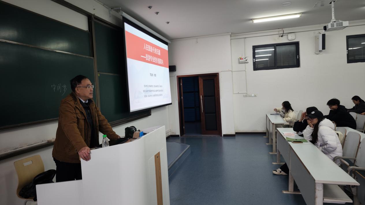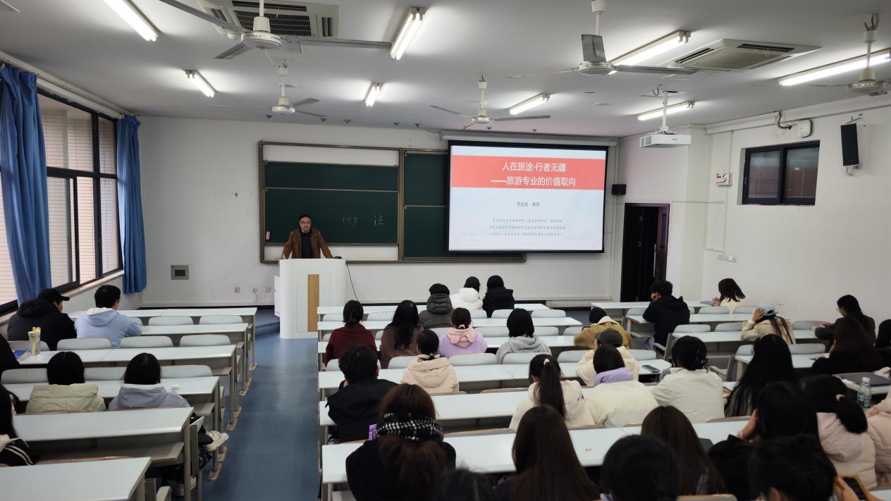 2024年11月21日下午,旅游管理系邀请了旅游学院创始院长和旅游管理国家级一流本科专业建设点首批带头人罗兹柏教授,给2024级旅游管理类新生开展题为《人在旅途·行者无疆——旅游专业的价值取向》的专业讲座。罗教授分享了自己对旅游理论与实践的系统思考,并剖析了旅游专业人才应该具备的能力素质,旨在帮助同学们树立系统旅游观念,认识旅游行业的人才要求,为今后的专业学习和职业规划提供有益指导。