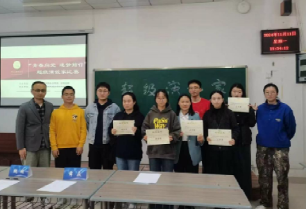 经过参赛选手们的激烈角逐,评委老师们从演讲内容、语言表达和形象风度等方面进行了评分。最终邓淦军同学荣获一等奖,陈美均、张琛等两位同学获得二等奖,田金鑫、李欣宸、周炫蕊、何义琼等四位同学获得三等奖,评委老师们为获奖选手颁发了荣誉证书。