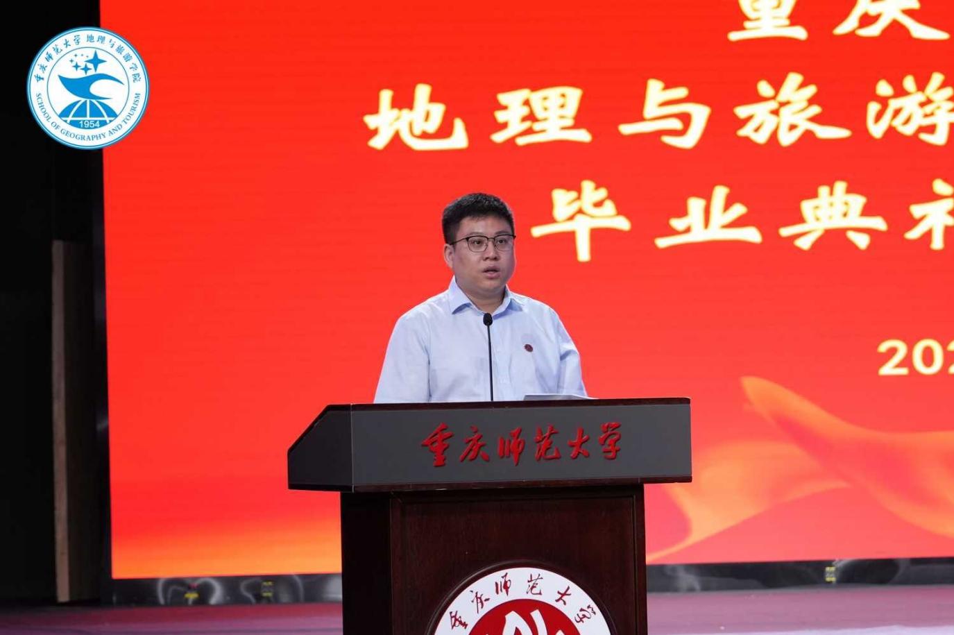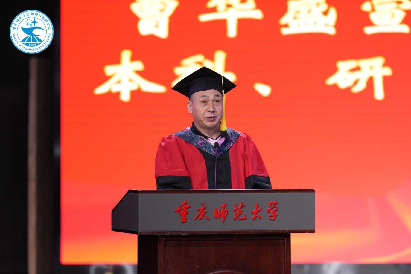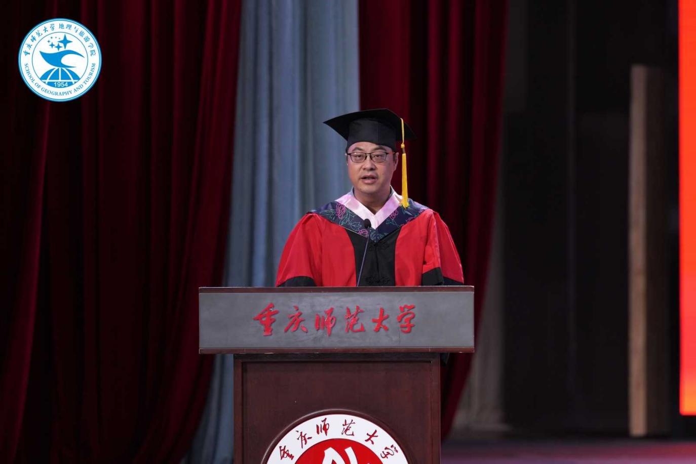 院长韦杰教授以“步量山河 心向远方”为主题向全体毕业生表达了诚挚的祝贺。韦杰院长深情回顾了同学们自踏入校园的青涩时期直至今日成就斐然的成长轨迹,从无数个初次尝试到众多成果的展现,每一步都已深刻地镌刻在毕业生们的青春记忆之中。他强调“大地不会说谎,人心需要真诚”,真正的专业精神体现在解决复杂问题的实践中,鼓励毕业生们在未来无论选择何种职业道路,都要脚踏实地,全心投入,精益求精,始终将个人职业视为终身追求的事业。最后,韦杰院长祝愿毕业生们健康幸福、事业有成。
