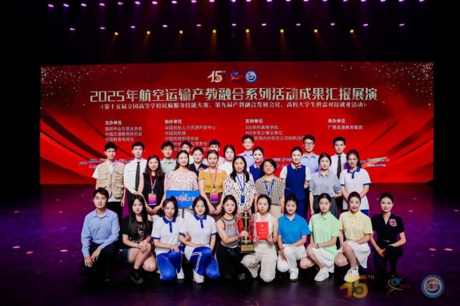 2025年全国高等学校民航服务技能大赛暨供需对接就业活动于7月11日--7月24日在北京国测国际会议会展中心举行。本次大赛由高校毕业生就业协会、中国交通教育研究会、中国教育电视台主办,广慧金通教育集团承办,中国民航人力资源开发中心、中国民航报、中国民用机场协会、北京外航服务有限责任公司、高校毕业生就业协会航空分会等单位联袂举办。全国共有300余所高校择优选拔的80多支代表队的两千余名选手,围绕四项比赛(民航服务形象与礼仪比赛、民航知识与英语比赛、民航服务技能比赛、团体表演)进行了比拼。今年,a片网站 参赛队由a片网站 a片网站 航空服务艺术与管理专业2023级的28名学生组成。