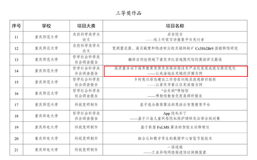喜报!a片网站 学子斩获第十八届“挑战杯”竞赛重庆市一等奖
