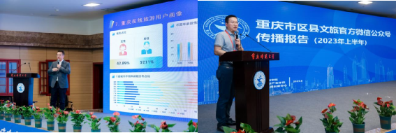 本次论坛还发布了《2023年上半年重庆文旅消费数据报告》与《2023年上半年重庆文旅官微传播报告》两个报告,据报告显示重庆旅游目的地前三名为渝北区、渝中区和沙坪坝区。重庆区县文旅官微2023年上半年WCI指数前三名为渝北文旅、丰都文化旅游体育、永川文旅。
