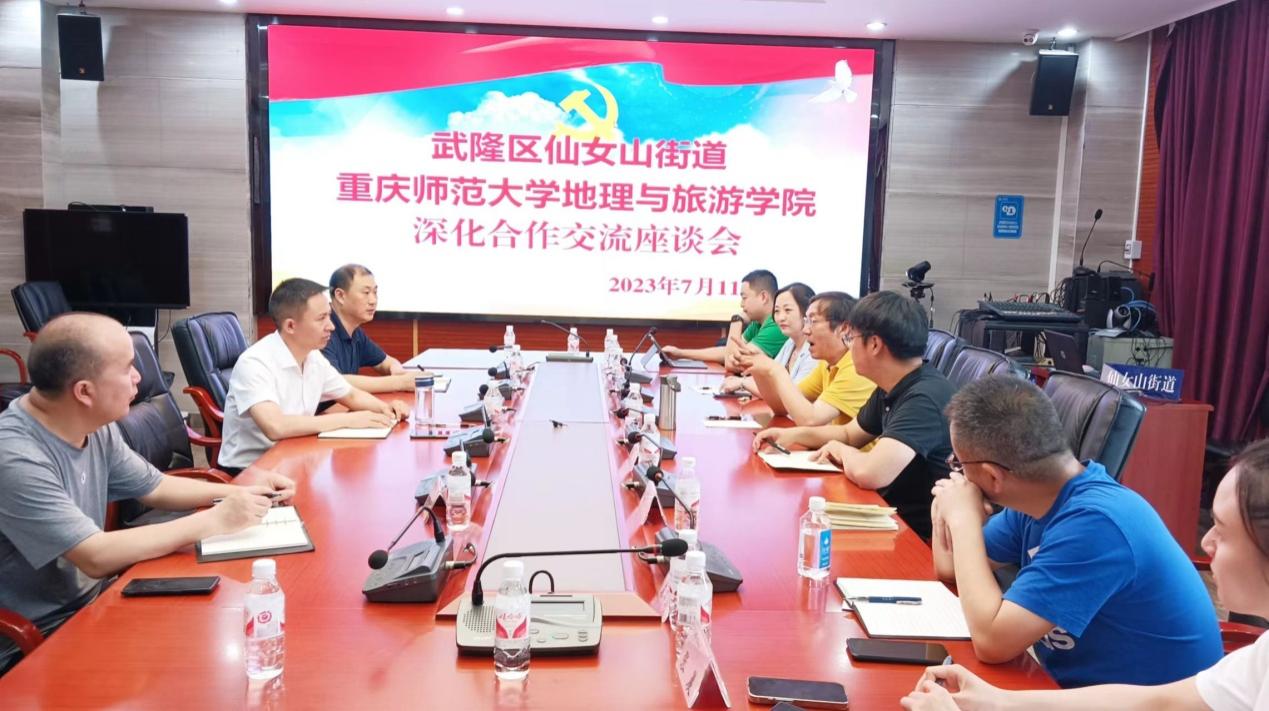 2023年7月11日,在仙女山街道三楼会议室,智慧旅游团队与武隆仙女山街道相关负责人就深化合作交流进行座谈,党委工委副书记、办事处主任李鹏程介绍了“世界最佳旅游乡村”荆竹村概况、评选“世界最佳旅游乡村”的过程以及武隆仙女山乡村旅游发展存在的问题,智慧旅游团队负责人罗仕伟教授就武隆仙女山乡村旅游发展问题清单、院长助理张云耀就建立实习基地、酒店系主任汪琳姝就加强住宿接待服务人员培训、团队秘书杨永丰就建立研究生联合培养基地等方面进行了交流。同时,以本次交流活动为契机,a片网站