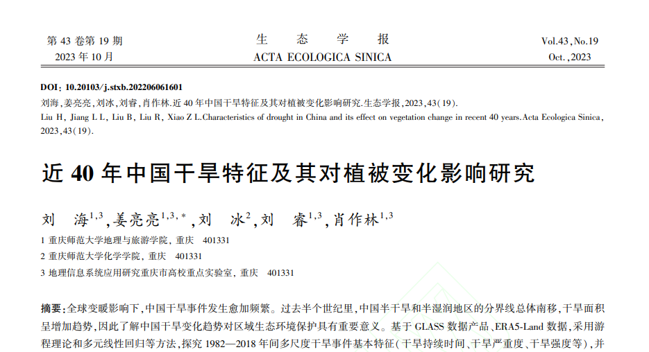 研究生刘海为第一作者,姜亮亮老师为通讯作者。论文链接://doi.org/10.20103/j.stxb.202206061601。