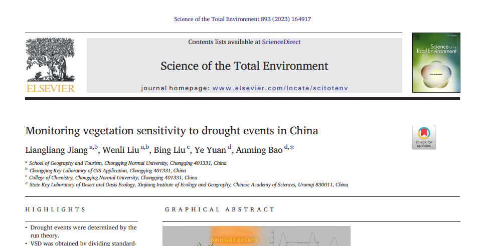 系列相关研究成果以题为《Monitoring vegetation sensitivity to drought events in China》发表在中科院1区top期刊《Science of the Total Environment》。a片网站