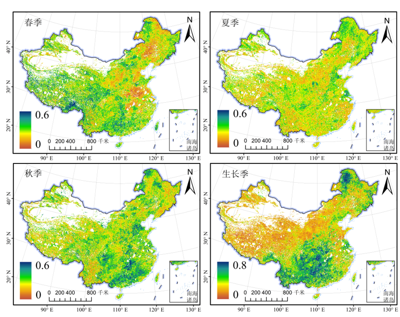 团队研究结果表明,随着时间尺度的增加,湿润区的干旱情况逐渐加剧,干旱强度值较高的地方。干旱持续时间和干旱严重度数值普遍较低。青藏高原和东北地区对干旱事件的敏感性较高。然而,近年来人类活动对陆地植被生态系统的积极干预,有效地改善了土地的生态环境,增加了森林覆盖率,提高了碳汇储量。