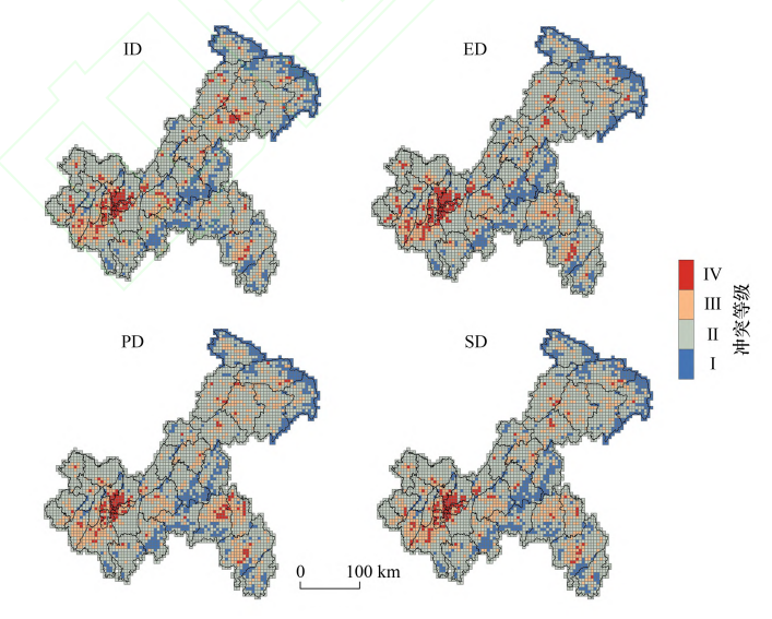 图5 重庆市未来不同发展情景下土地利用冲突空间分布图