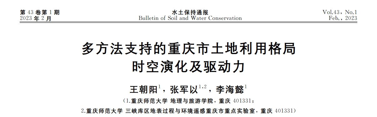 以题为《多方法支持的重庆市土地利用格局时空演化及驱动力》,发表在《水土保持通报》。a片网站