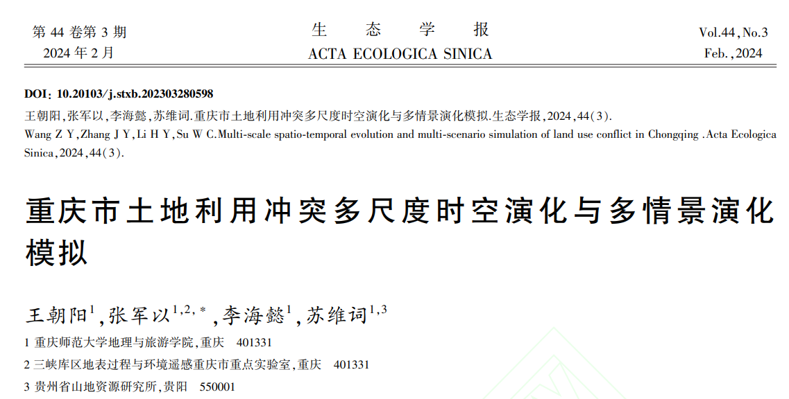 以题为《重庆市土地利用冲突多尺度时空演化与多情景演化模拟》,发表在《生态学报》。a片网站