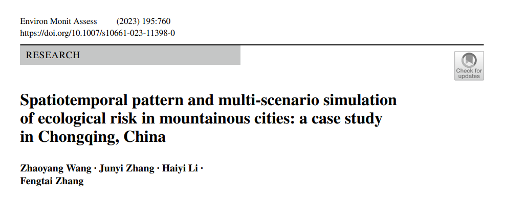 硕士研究生王朝阳为第一作者,张军以教授为通讯作者。论文链接://doi.org/10.1007/s10661-023-11398-0.