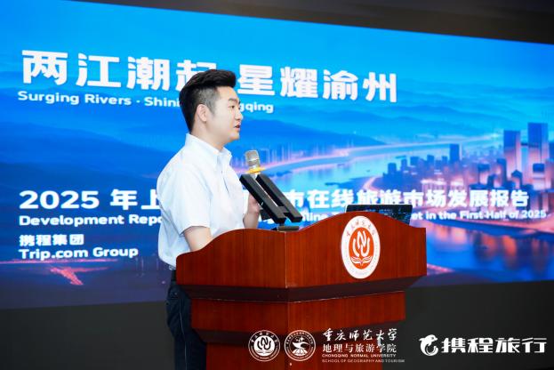 会议政产学研用紧密结合,携程集团重庆分公司常务副总经理邓琦、重庆商务职业学院文化旅游学院副院长马建林教授,结合产业发展实践,发布了《重庆在线文旅消费数据报告(2025年上半年)》《驶向未来:数字文旅产业发展趋势与核心人才需求前瞻》的产业发展报告,详细展示了行业发展的热点、问题及其未来发展的着力点。