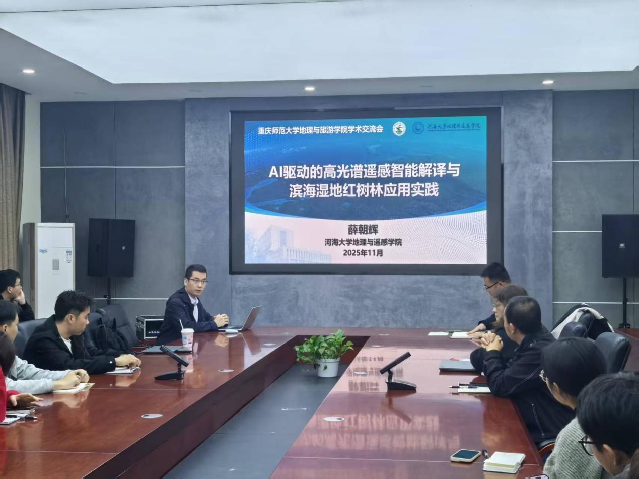 人文地理、GIS创新研究团队邀请河海大学地理与遥感学院薛朝辉教授作题为“AI驱动的高光谱遥感智能解译与滨海湿地红树林应用实践”的学术报告。报告在致用楼220会议室举行,由张军以教授主持。学院魏兴萍教授、杨颖副教授、汪垚副教授、雷超桂副教授、杨国胜副教授、李林芝博士、王小丽博士,以及学院人文地理和GIS专业硕士研究生等50余人参加了报告会。