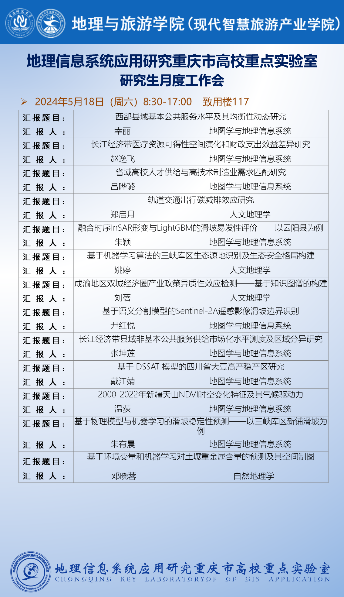汇报环节,同学们展示了近期工作进度、阶段性研究成果和工作计划。本次汇报涵盖公共服务测度、障碍效应、极端气候、交通出行、生态安全和土壤侵蚀等多个研究主题,涉及方法包括LMDI模型、InVEST-PLUS模型、DSSAT模型等,充分体现了地理学科与地理时空大数据相结合的研究理念。同时,研究区域涉及了三峡库区、长江经济带、中亚地区、全球等多尺度,深化了师生对区域差异的理解。