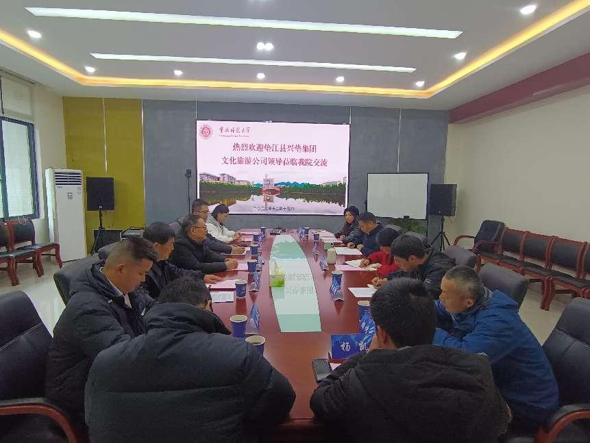 旅游管理专业学科发展与社会服务情况,重庆兴垫文化旅游开发有限公司董事长王辉对此行目的以及垫江县文旅发展战略和恺之峰景区的基本情况进行了介绍。会上双方与会人员分别围绕恺之峰景区开发与运营提质升级路径和垫江县文旅事业发展战略规划等相关问题展开了深入研讨,并围绕着人才培养、员工培训、智力支持等方面提出了合作建议。