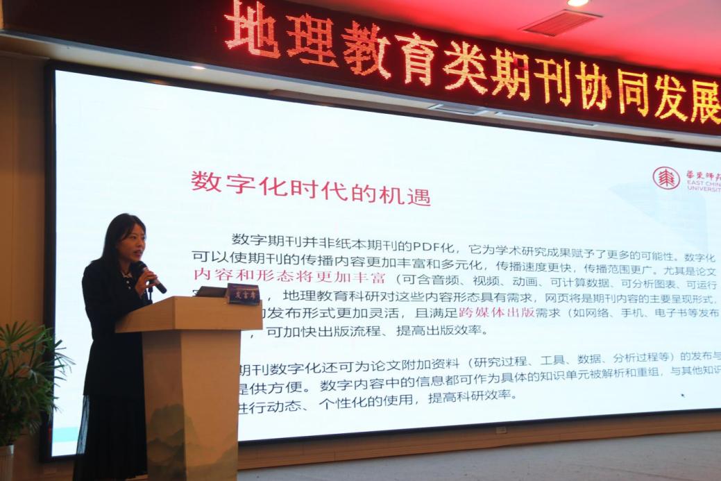 《地理教育》主编杨娅娜以“搭建交流展示平台,助推地理教育改革创新”为主题进行了报告。首先介绍了《地理教育》的概况和发展历程,包括发展阶段、栏目变化、编委会的组建等,在此过程中,得到了一大批地理学家、地理教育家的关怀与爱护。接着阐述了期刊工作,包括日常管理、期刊出版、期刊内容和活动开展,同时指出《地理教育》在发展历程中获得的荣誉奖项以及对社会的积极影响。最后鼓励读者参与到期刊举办的比赛活动中,以丰富经验、增长见识。