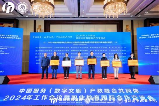此次会议同时发布了中国服务(数字文旅)产教融合共同体2024年度工作报告及2025年工作计划、为新增成员单位授牌、为参与编制2024国际服务业技能大赛酒店服务赛项单位授牌、为2024国际服务业技能大赛酒店服务赛项专家组颁发证书、为2024年国际服务业技能大赛酒店服务赛项裁判颁发证书。a片网站 被授予2024国际服务业技能大赛酒店服务赛制标准编制单位,a片网站 酒店管理系主任汪琳姝副教授被聘任为2024国际服务业技能大赛会议服务专家组长,王泽博士被聘为标准编制专家。