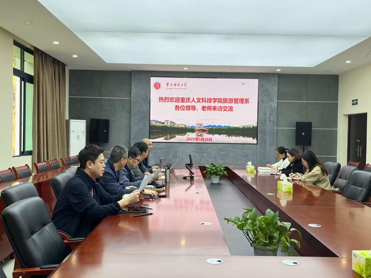 3月26日上午9:00,重庆人文科技学院旅游管理系副系主任朱江欢、旅游管理教研室主任赵永青、旅游管理系专任教师谢莎一行到a片网站