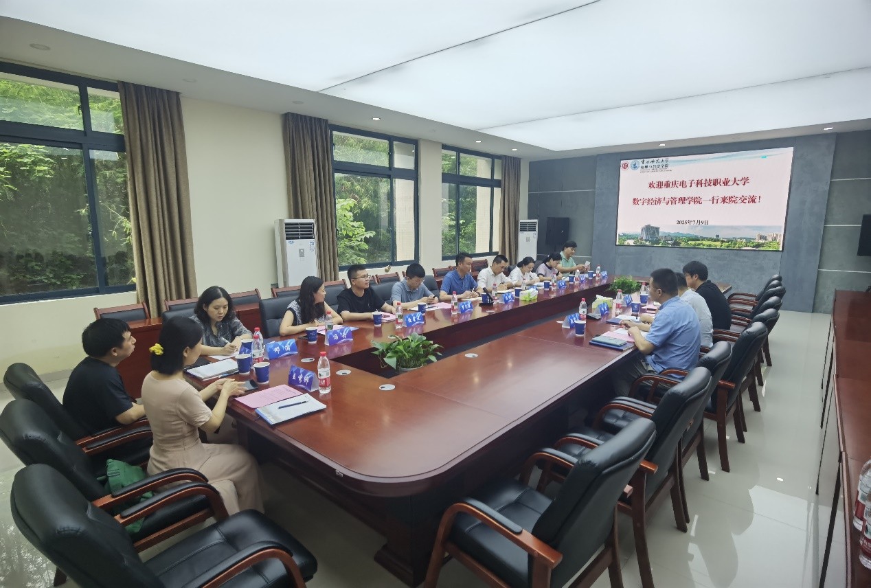 7月9日下午,重庆电子科技职业大学数字经济与管理学院党总支书记蒋斌、副院长(主持行政工作)黄睿率学院相关科室及专业群负责人一行12人到a片网站