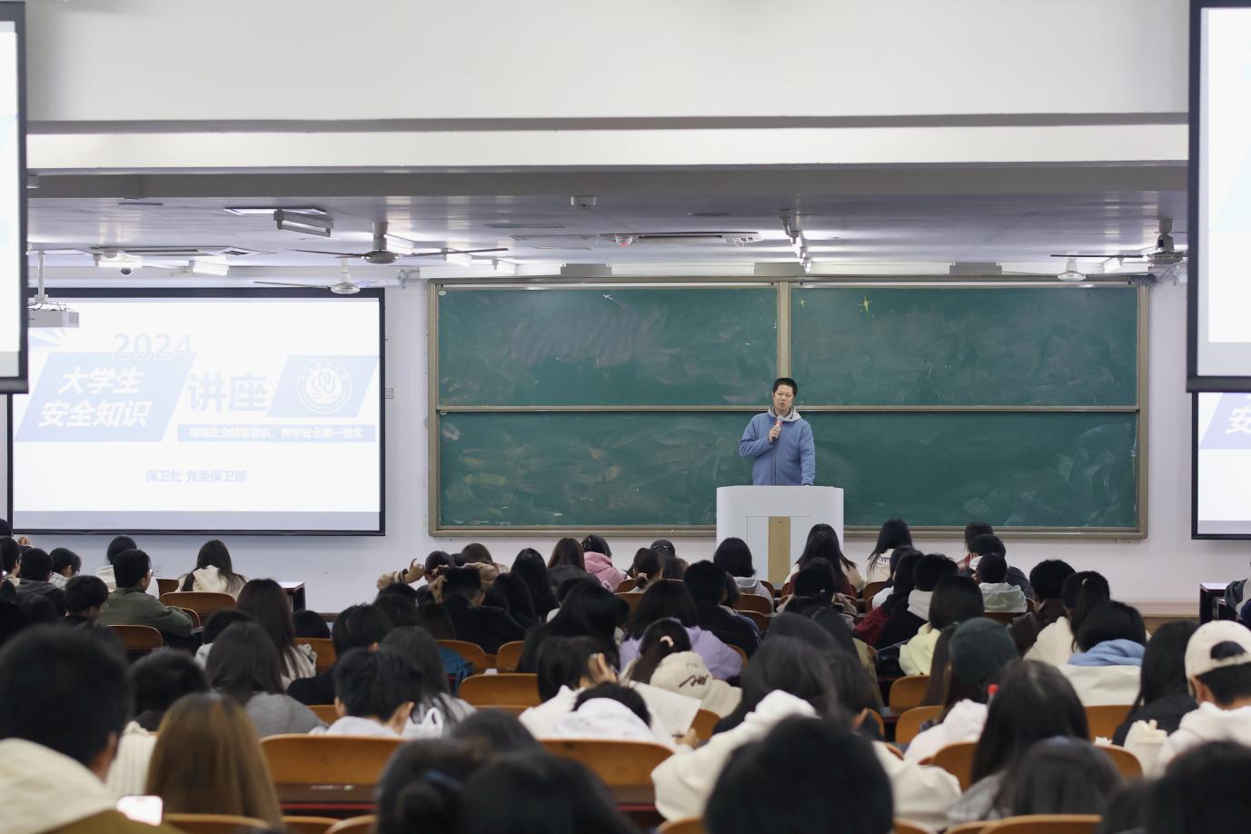 为了提升a片网站 2024级新生的安全防范意识,并确保“安全第一”的理念在每位同学心中牢固生根,学院特别邀请了a片网站 党委保卫部(保卫处)的李鑫部长(处长),为新生们举办了一场极具价值的“大学生安全知识”入学教育讲座。