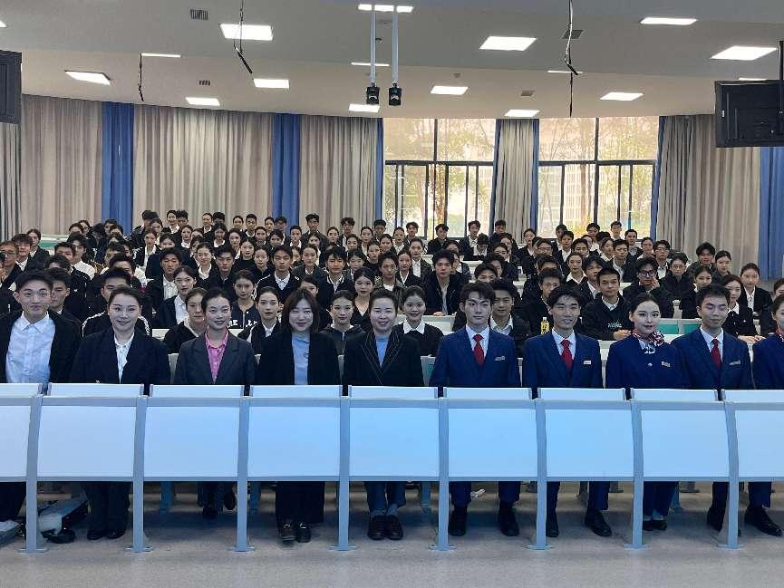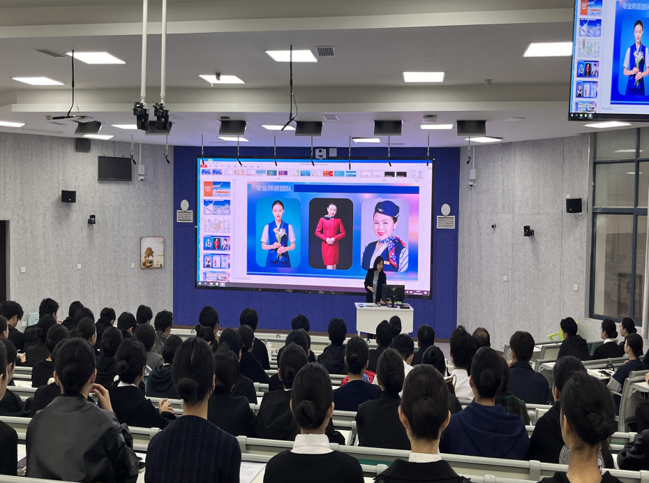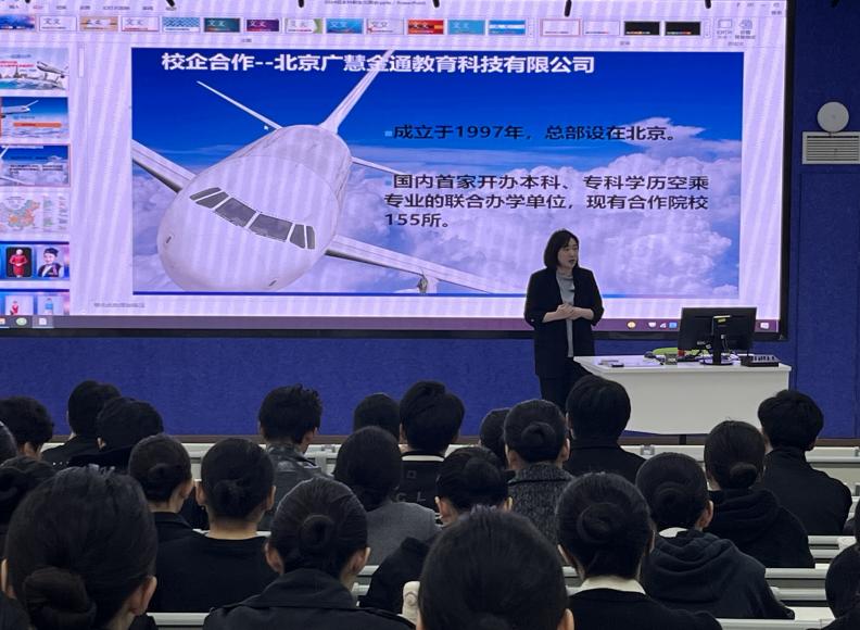本次,由金通驻a片网站 工作处副主任毛文静老师介绍专业师资团队、校企合作方北京广慧金通教育科技有限公司提供的教学设备以及前往阿提哈德航空培训学院学习的经历和历届学长学姐参加各类特色活动的精彩表现。