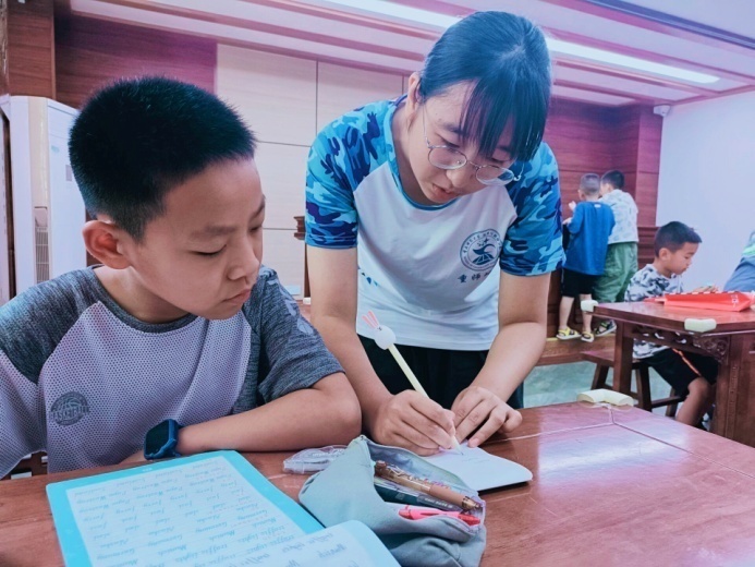 通过这几天与社区小朋友的接触,实践团成员感受到了孩子的天真单纯,也在助教过程中体会孩子们的生活现状与对亲情的渴望。他们中的大多数家长因为工作繁忙没有太多时间给予孩子陪伴,所以才将他们送到这里来。一名成员在与小朋友们告别后感慨:“听到他们说很想爸爸妈妈,很久都见不上面,挺心疼的,有父母在的地方,才是真正的家,希望这几天我们的陪伴可以带给他们一些温暖,后面几天我们要更加用心地给予他们关怀!”服务团成员用实实在在的行动为孩子们送去温馨关怀,并真诚地祝福孩子们都能有快乐幸福的童年!