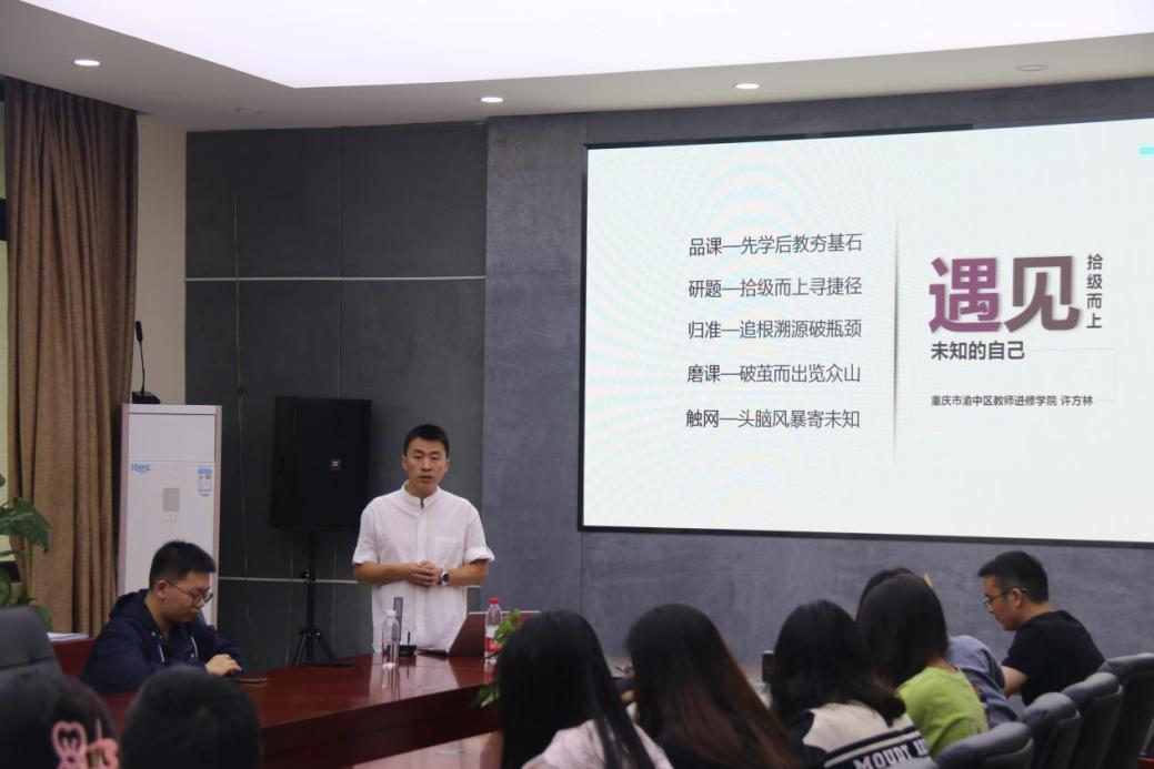 于4月27日下午在致用楼220会议室开展了学风建设月系列活动之“身在‘优师’看‘优师’专题分享会”。分享会邀请了渝中区地理教研员许方林老师和鲁能巴蜀中学教研处副主任严磊老师,旨在促进师生之间的交流学习,提升学生职业认同感和职业素养。