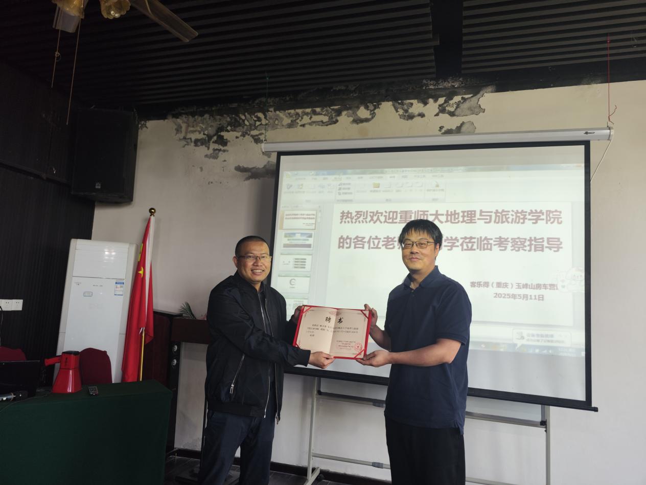 上午,旅游管理师生主要考察了玉峰山客乐得房车营地。客乐得房车营地位于重庆市渝北区玉峰山森林公园内,是重庆首家房车营地,为重庆市级科普基地和重庆市级研学基地。重庆客乐得房车俱乐部有限公司执行董事赖才源首先给大家普及了房车营地知识,并对玉峰山客乐得房车营地进行了总体介绍。然后赖董带领师生们参观了主要营地设施和娱乐休闲设施,并对其经营管理状况进行了说明。接下来在房车营地会议室,赖董做了“房车露营地经营管理思考”专题讲座,师生认真聆听,并就房车露营地发展核心问题与赖董进行交流。最后,张云耀副院长代表学院给赖才源执行董事颁发了行业导师聘书,并对赖董长期对a片网站 旅游管理专业师生的帮助表示感谢,对未来进一步合作交流提出了殷切期望。