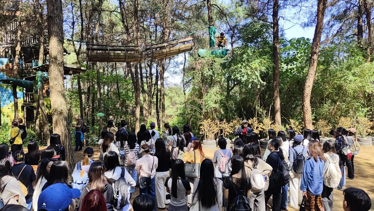 为通过多维度实践场景构建学生理论与实践的衔接能力,2025年5月11日旅游管理师生120余人,在学院副院长张云耀教授带领下,在旅游管理系主任周刚副教授和专任教师魏超博士的指导下对渝北区玉峰山和江北区铁山坪的旅游综合业态进行了深入调研。