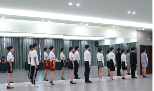 与北京广慧金通教育集团深度共建的校企合作特色专业,航空服务艺术与管理专业本次复检创新采用“校方+企业”双视角考评模式,围绕形体展示、自我介绍两大核心环节展开,不仅严格核验新生入学资格,更为其筑牢航空职业根基奠定了坚实基础。
