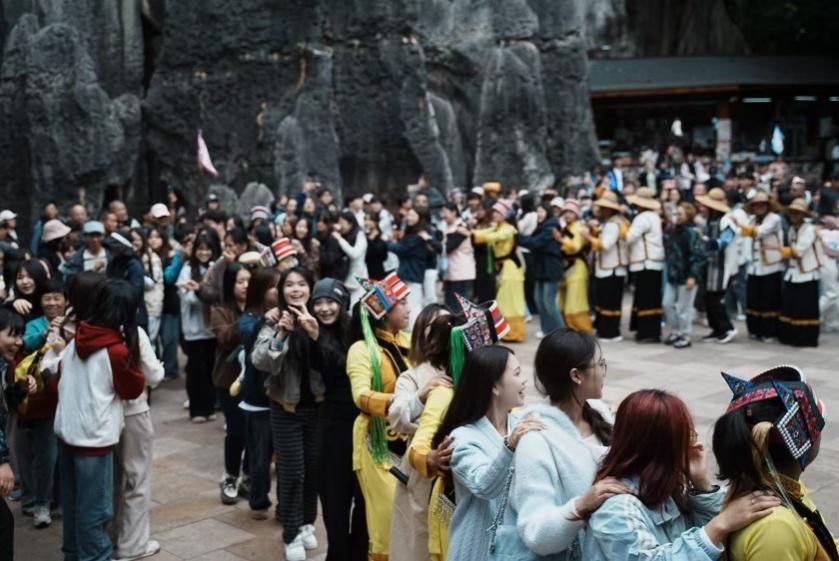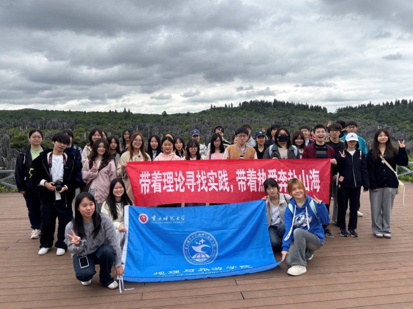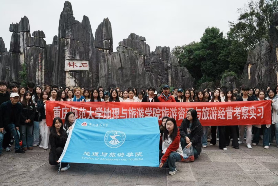 2024级本科旅游管理专业共120名余名学生在六位指导老师的带领下来到昆明石林风景区,开展了一场兼具专业实践与自然探索的研学活动,沉浸式开启课堂之外的“旅游管理实践课”。
