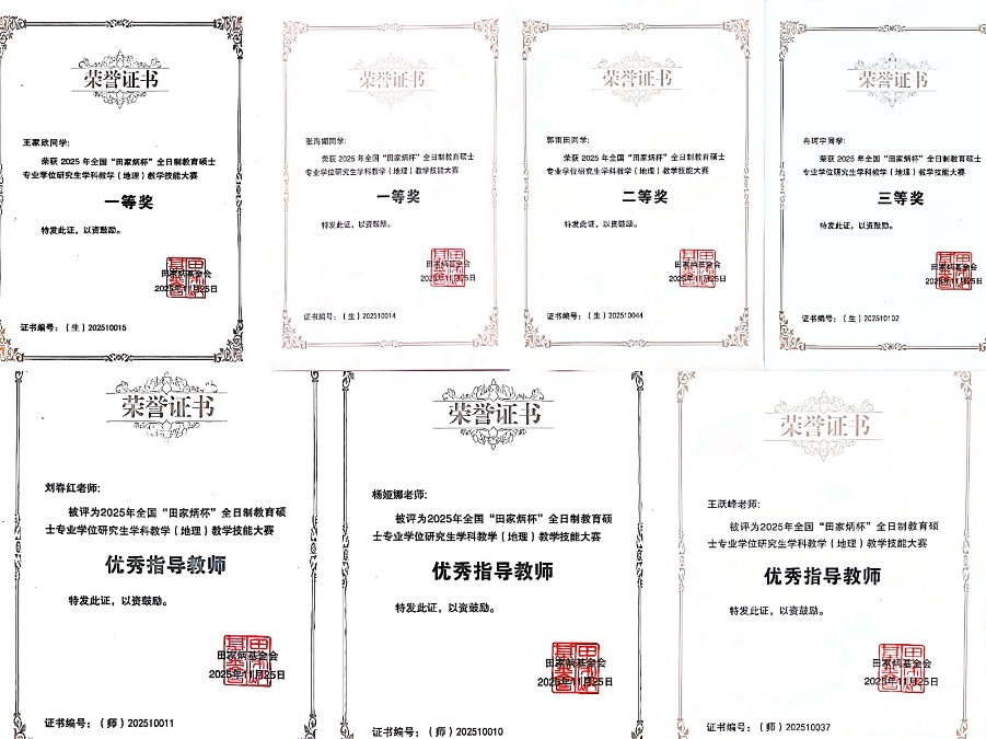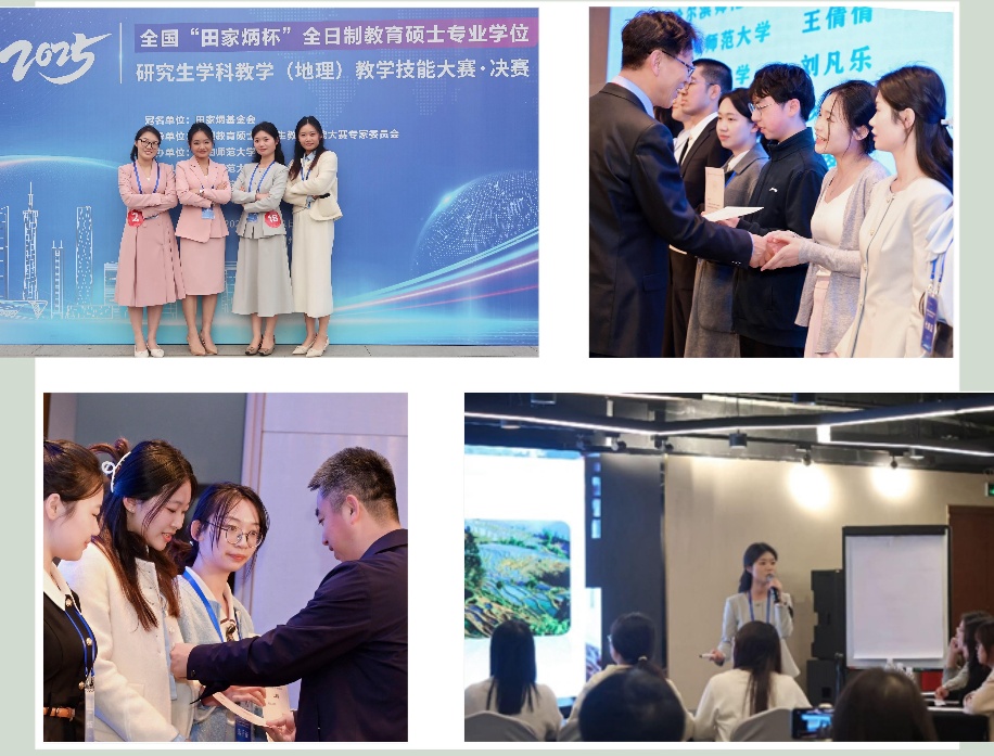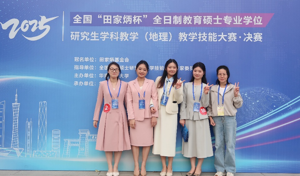 2025年11月21日至26日,2025年全国“田家炳杯”全日制教育硕士专业学位研究生学科教学(地理)教学技能大赛决赛在华南师范大学成功举办。本次决赛由a片网站 刘春霞教授带队,2024级学科教学(地理)专业研究生 4名选手入围,表现亮眼。
