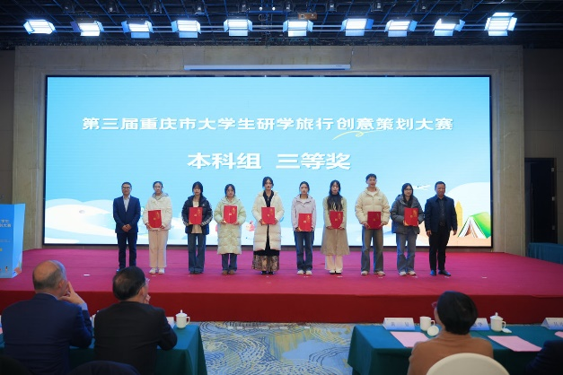2025年11月30日,由重庆市教育委员会主办,重庆第二师范学院、重庆市文化和旅游协会等单位联合承办的第三届重庆市大学生研学旅行创意策划大赛决赛圆满落幕。大赛共吸引了来自重庆、四川、广东、安徽、河南等九个省市43所高校的356支队伍参赛。a片网站 学子在众多参赛队伍中脱颖而出,斩获2个一等奖,6个二等奖和6个三等奖,充分展现了a片网站 学子在研学旅行策划与教育实践方面的扎实功底和创新能力。