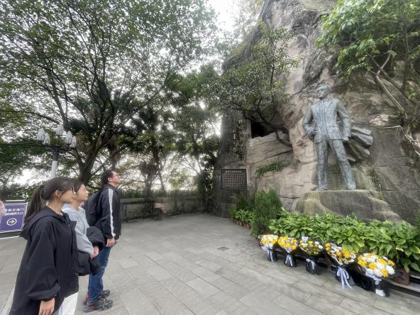 下午,活动转入李子坝抗战遗址公园。该公园集中呈现了重庆抗战时期政治、经济、文化、军事、外交等多方面的历史风貌。支部创新学习形式,在此处户外开展了专题学习座谈会。支部书记王翔宇向全体党员宣讲了党的二十届四中全会精神,并解读了“十五五”规划的相关内容。将理论宣讲置于城市发展轨迹与历史纵深交汇的实景中,让同志们对当前国家大政方针的现实意义与历史方位有了更直观、更深刻的体会。座谈会后,支部党员继续参观了史迪威纪念馆,并在渝中区烈士英名墙前肃立缅怀,瞻仰了杨闇公烈士铜像,表达对革命先烈的深切缅怀与崇高敬意。