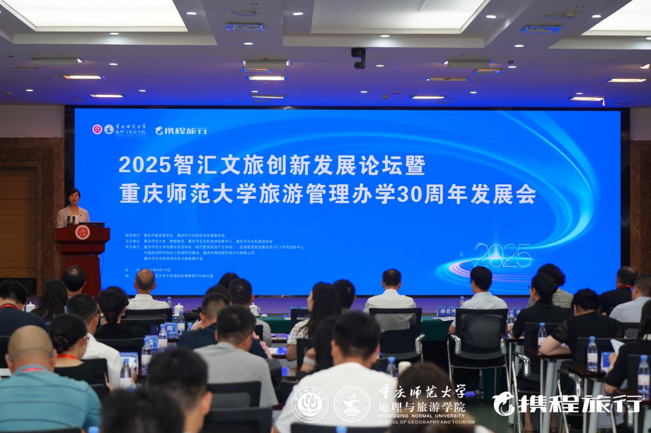 会议政产学研用紧密结合,携程集团重庆分公司常务副总经理邓琦、重庆商务职业学院文化旅游学院副院长马建林教授,结合产业发展实践,发布了《重庆在线文旅消费数据报告(2025年上半年)》《驶向未来:数字文旅产业发展趋势与核心人才需求前瞻》的产业发展报告,详细展示了行业发展的热点、问题及其未来发展的着力点。