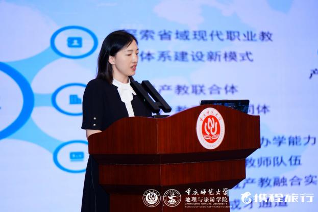 主题报告环节,特邀嘉宾中国旅游研究院院长戴斌教授,南开大学商学院院长、全国MTA教指委副主任白长虹教授,中山大学旅游学院院长徐红罡教授,文旅部科技教育司原司长孙若风,十里芳菲文旅集团董事长张蓓,携程商务副总裁、携程文旅产业学院院长刘迪分别做了主题为“旅游强国建设与人才培养”“幸福与创造:中国文旅的先锋案例经验与MTA教育发展” “中国旅游管理专业建设”“科技创新赋能文旅融合高质量发展”“怀揣理想 共建美好乡村”“目的地文旅营销”的主题报告,结合自身研究,为新时代文旅发展提出了具有前瞻性和实践性的见解,深入剖析了当前文旅产业发展的机遇与挑战,系统阐述了人才培养、科技创新、乡村振兴等关键议题,为文旅高质量发展指明了方向和创新发展路径。最后,携程商务副总裁刘迪在会上宣布正式启动携程入境游多语言服务人才培训计划并将在重庆首发试点。