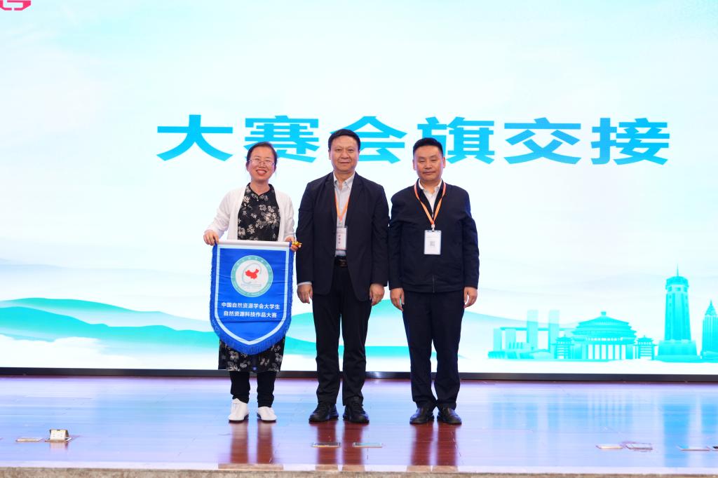 将大赛会旗移交给长春师范大学,标志着赛事精神的薪火相传、生生不息。长春师范大学地理科学学院院长董炜华教授随后致辞,对本届大赛的圆满成功表示热烈祝贺,并诚挚邀请大家明年在北国春城——长春再会,共同参与第八届大学生自然资源科技作品大赛。