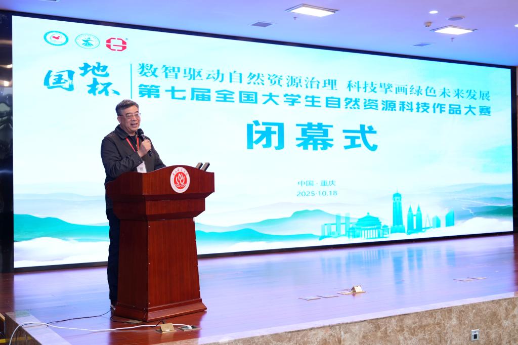 闭幕式由中国自然资源学会副秘书长王捷主持。大赛评审组副组长、西南大学涂建军教授在综合点评中指出,本届参赛作品整体呈现出“数智化”程度高、交叉性强、应用前景广的特点,充分肯定了各团队对大赛主题的深刻理解和卓越实践,并向获得各项大奖的老师同学们表示祝贺。